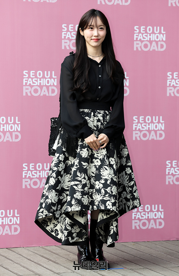 방송인 이코코가 31일 오후 서울 송파구 석촌호수 아뜰리에에서 열린 '서울패션로드 2024' 포토월에서 포즈를 취하고 있다.