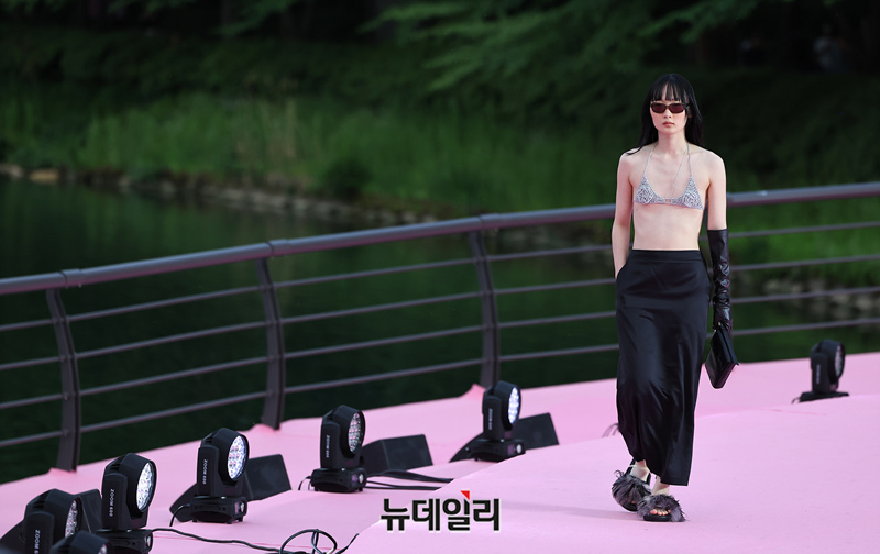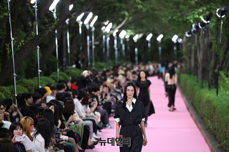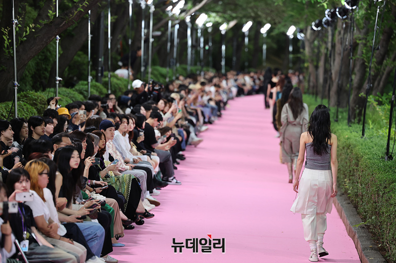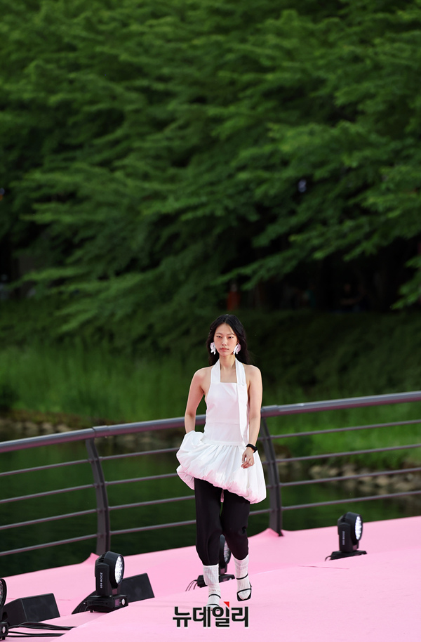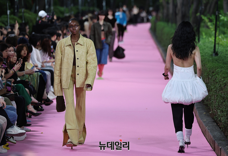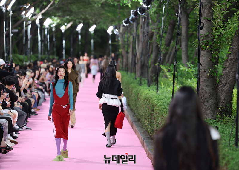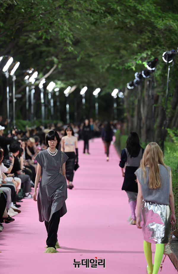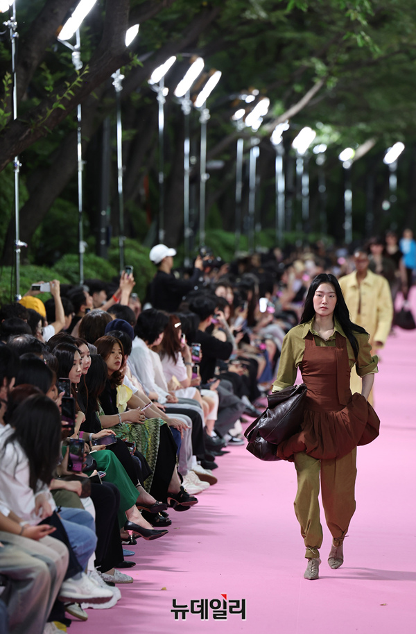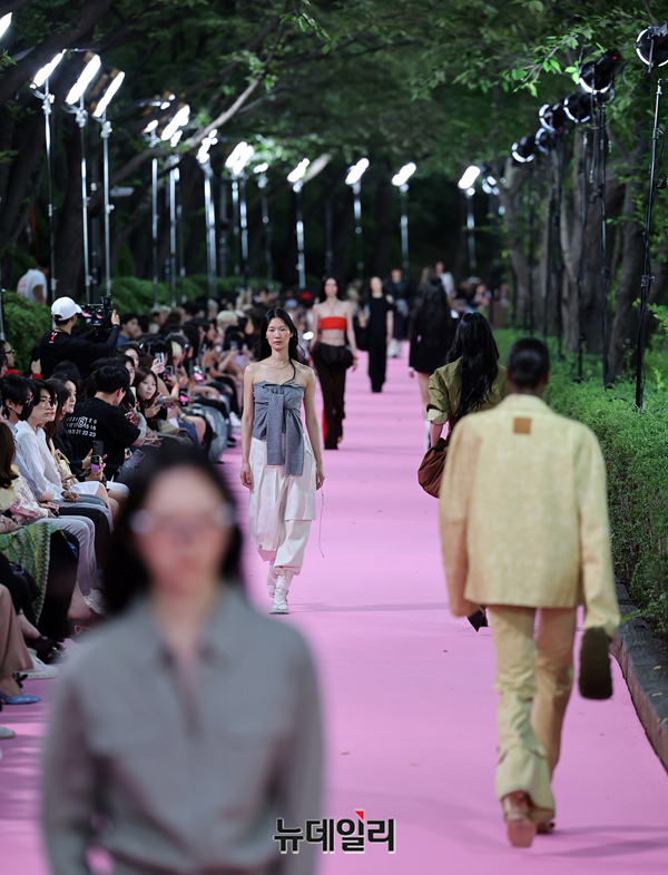 서울시가 5월 마지막날인 31일 오후 서울 송파구 석촌호수 서호 수변무대에서 서울패션로드 첫 행사를 열고 250m 산책로에서 런웨이를 선보이고 있다. 신혜영 디자이너의 분더캄머가 여행길로 상상해 세계 여행하는 모던한 여성의 모습을 런웨이에서 선보이고 있다.서울패션로드는 서울시가 K-패션의 매력을 알려 '글로벌 패션도시'로 거듭나기 위해 마련한 행사다. 250m 석촌호수 산책로 위에 스카이코랄빛 카펫을 깔아 로맨틱한 런웨이로 마련했다.이날 행사는 클래식 사전 공연을 시작으로 3개의 글로벌 유망 디자이너 브랜드(뮌, 분더캄머, 비뮈에트)의 패션쇼가 진행됐다.