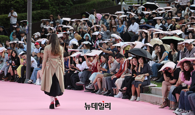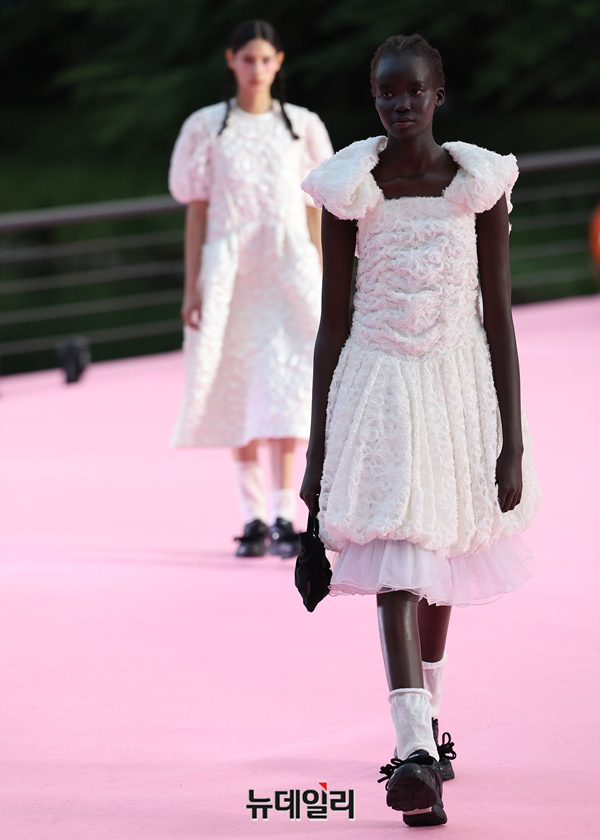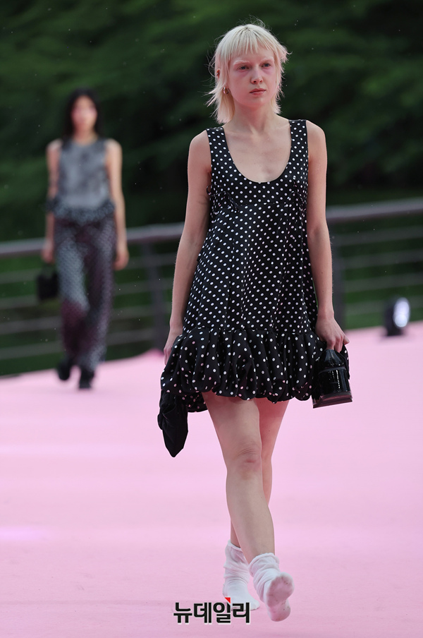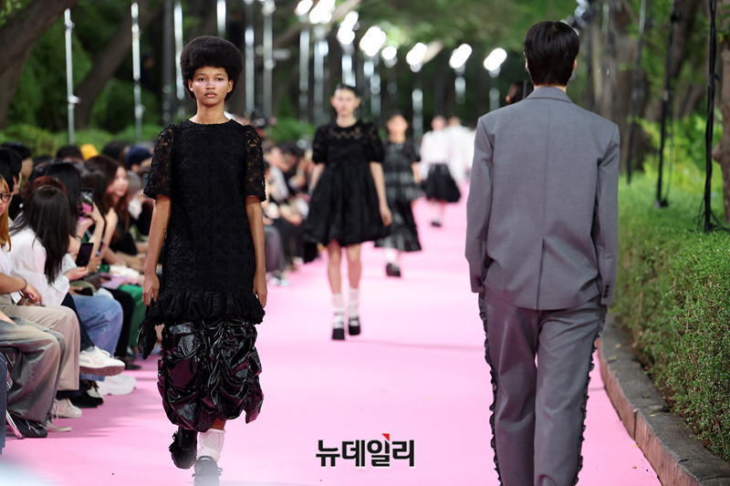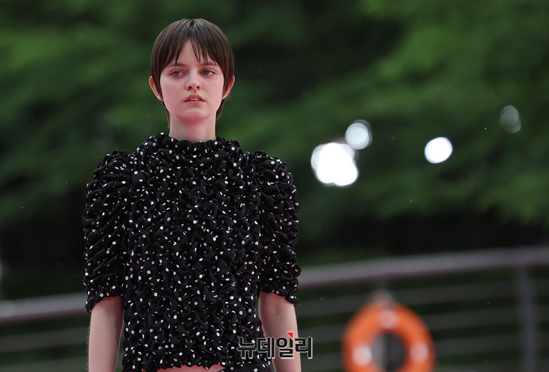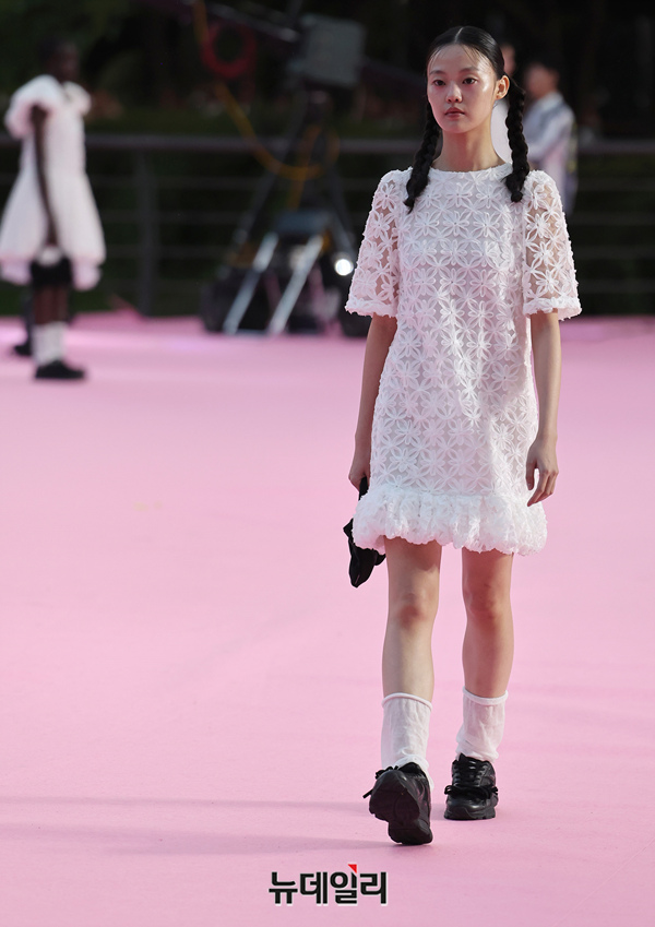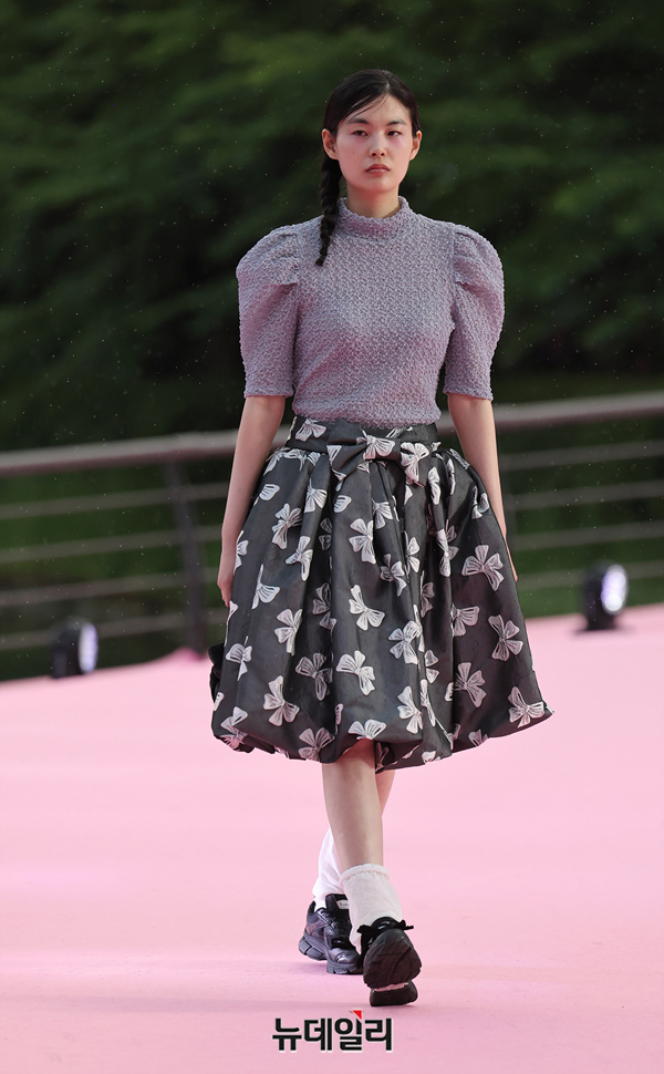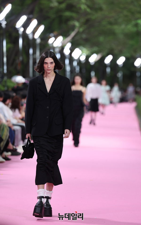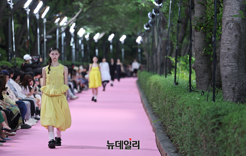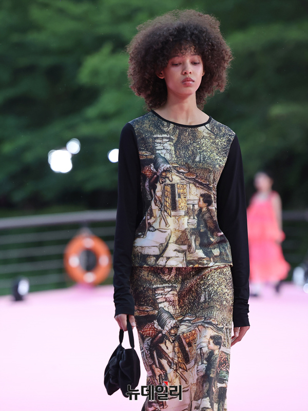 서울시가 5월 마지막날인 31일 오후 서울 송파구 석촌호수 서호 수변무대에서 서울패션로드 첫 행사를 열고 250m 산책로에서 런웨이를 선보이고 있다. 서병문, 엄지나 디자이너의 뷔미에트가 '아름다운 악몽' 컨셉으로 몽환전인 컬렉션을 선보이고 있다.서울패션로드는 서울시가 K-패션의 매력을 알려 '글로벌 패션도시'로 거듭나기 위해 마련한 행사다. 250m 석촌호수 산책로 위에 스카이코랄빛 카펫을 깔아 로맨틱한 런웨이로 마련했다.이날 행사는 클래식 사전 공연을 시작으로 3개의 글로벌 유망 디자이너 브랜드(뮌, 분더캄머, 비뮈에트)의 패션쇼가 진행됐다.