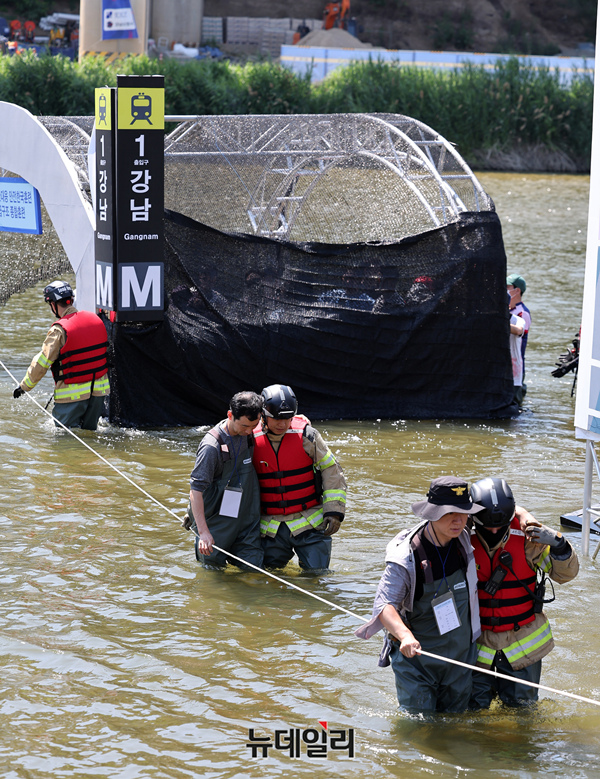 [포토] 강남역이 잠겼다...강남구, 침수대비 안전훈련 실시