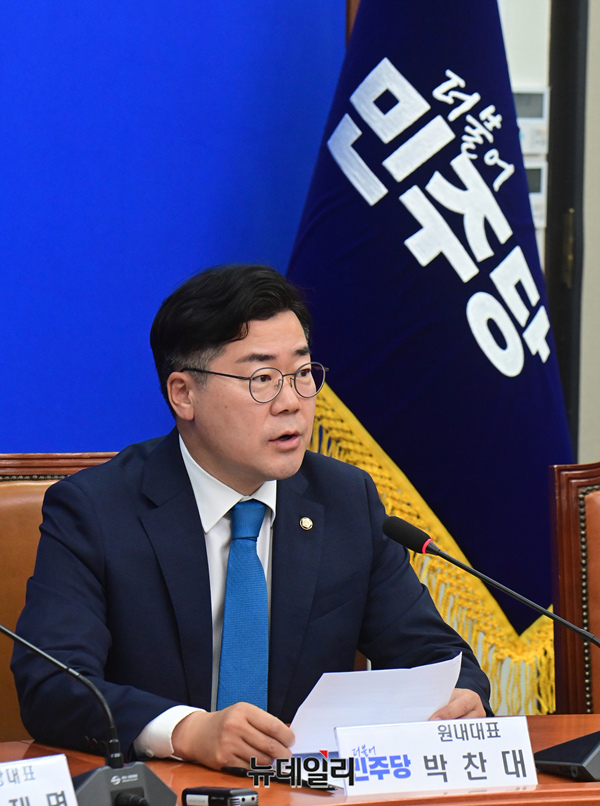 박찬대 더불어민주당 원내대표가 3일 오전 국회에서 열린 최고위원회의에서 모두발언을 하고 있다.