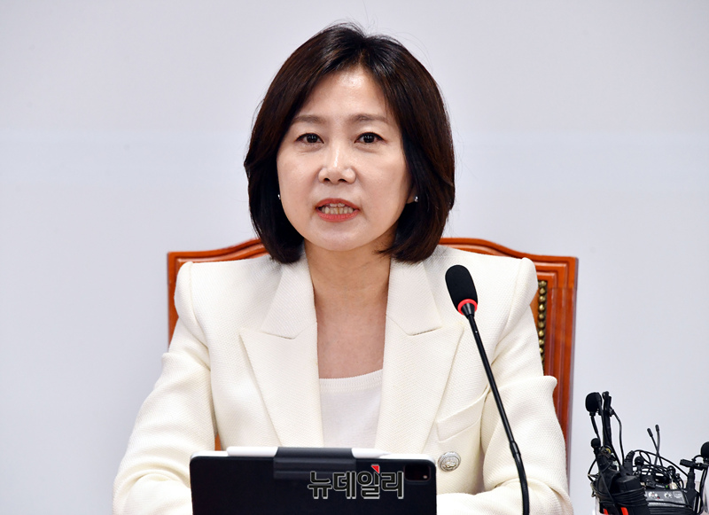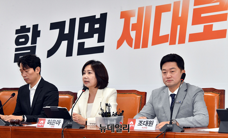 허은아 개혁신당 대표가 3일 오전 국회에서 열린 최고위원회의에서 모두발언을 하고 있다.