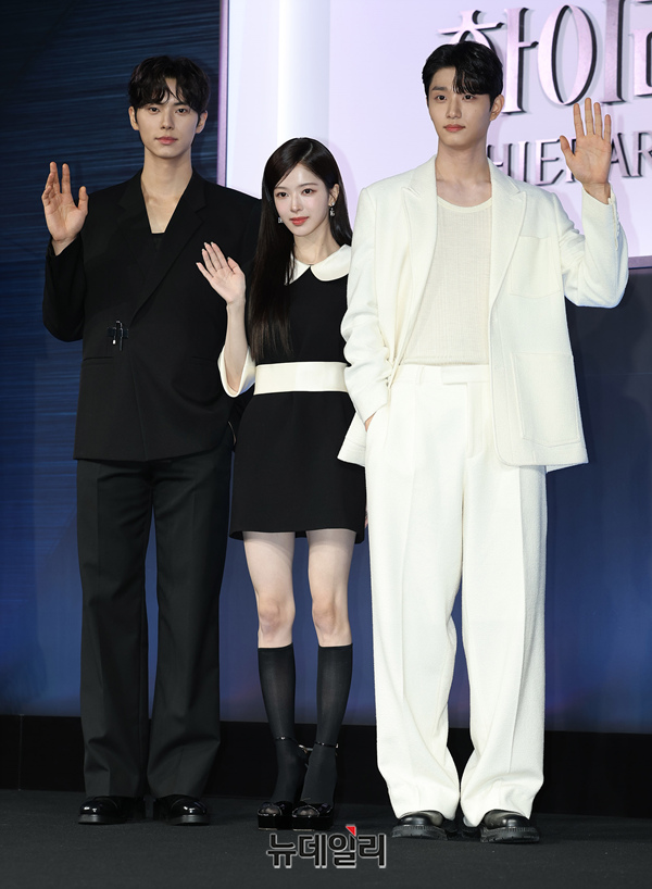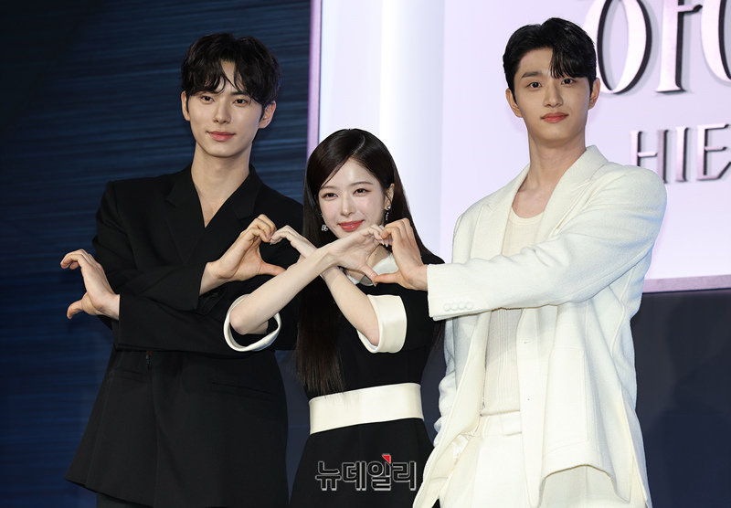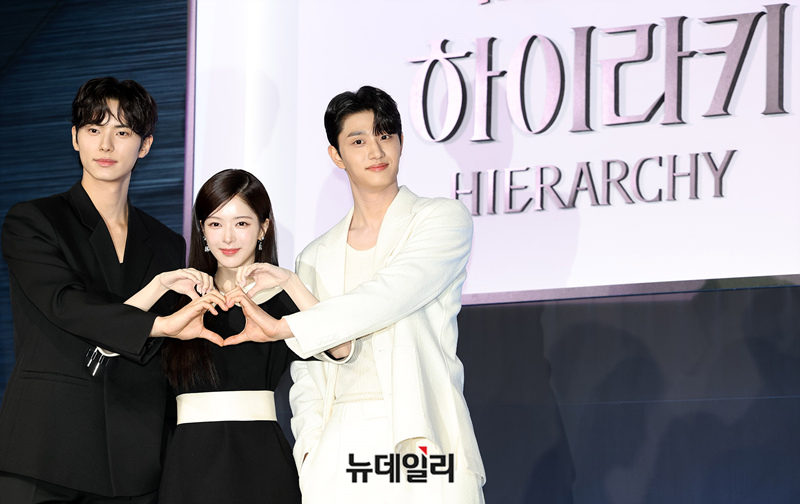 배우 이채민, 노정의, 김재원이 3일 오전 서울 중구 앰배서더 서울 풀만에서 열린 넷플릭스 시리즈 '하이라키(감독 배현진)' 제작보고회에서 포토타임을 갖고 있다.'하이라키'는 조직이나 집단 내 계층적인 구조를 뜻한는 단어. 상위 0.01%의 소수가 질서이자 법으로 군림하는 주신고등학교에 비밀을 품고 입성한 전학생이 그들의 견고한 세계에 균열을 일으키며 벌어지는 하이틴 스캔들이다.배우 노정의, 이채민, 김재원, 지혜원, 이원정 등이 출연한다. 6월 7일 공개.