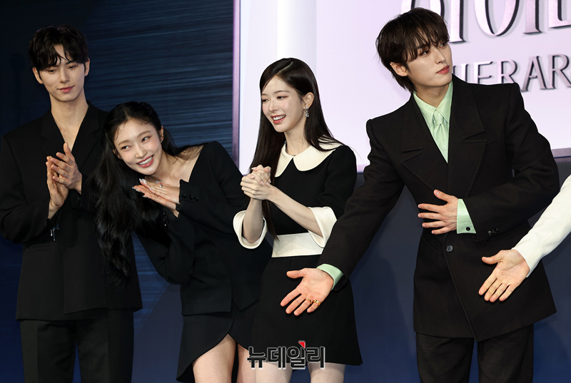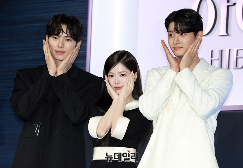넷플릭스 시리즈 '하이라키(감독 배현진)' 주연배우들이 3일 오전 서울 중구 앰배서더 서울 풀만에서 열린 제작보고회에서 포토타임을 갖고 있다.