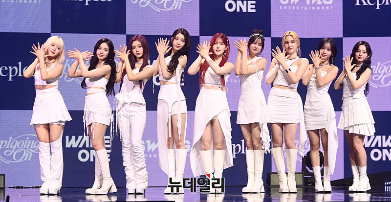 케플러 히카루(왼쪽부터), 강예서, 김다연, 샤오팅, 김채현, 최유진, 휴닝바히에, 서영은, 마시로가 3일 오후 서울 광진구 예스24 라이브홀에서 열린 첫 번째 정규앨범 '켑원고잉온(Kep1going On)' 쇼케이스에서 포즈를 취하고 있다.아이돌 오디션 프로그램을 통해 9인조로 결성된 케플러는 이번 재계약을 통해 7인조로 활동을 이어간다. 마시로와 강예서는 이번 앨범 활동과 내달 열리는 일본 콘서트를 마지막으로 팀에서 빠지게 된다.국내 첫 정규앨범 '켑원고잉온(Kep1going On)'은 타이틀곡 '슈팅스타(Shooting Star)'를 포함해 10곡을 담았다. 음원은 오후 6시 공개.
