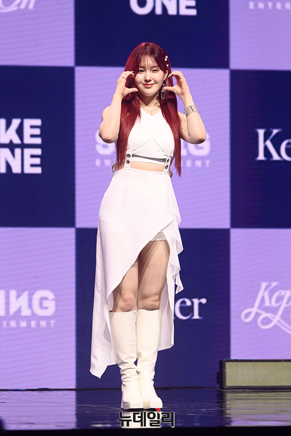 케플러 김채현이 3일 오후 서울 광진구 예스24 라이브홀에서 열린 첫 번째 정규앨범 '켑원고잉온(Kep1going On)' 쇼케이스에서 포즈를 취하고 있다.아이돌 오디션 프로그램을 통해 9인조로 결성된 케플러는 이번 재계약을 통해 7인조로 활동을 이어간다. 마시로와 강예서는 이번 앨범 활동과 내달 열리는 일본 콘서트를 마지막으로 팀에서 빠지게 된다.국내 첫 정규앨범 '켑원고잉온(Kep1going On)'은 타이틀곡 '슈팅스타(Shooting Star)'를 포함해 10곡을 담았다. 음원은 오후 6시 공개.
