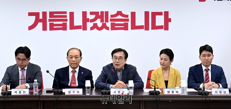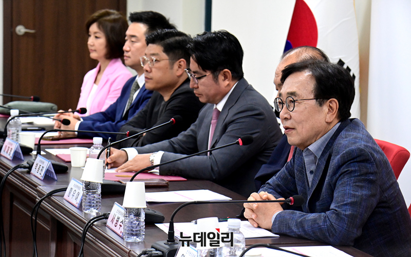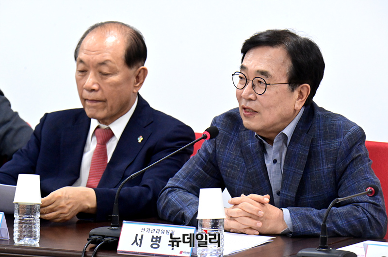 서병수 국민의힘 선거관리위원장이 3일 오호 서울 여의도 중앙당사에서 열린 제4차 전당대회 선거관리위원회 임명장 수여식 및 1차회의에서 모두발언을 하고 있다.