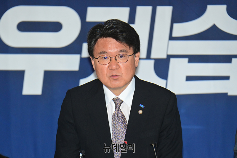 황운하 조국혁신당 원내대표가 4일 오전 국회 본청 로텐더홀에서 열린 의원총회에서 모두발언을 하고 있다.