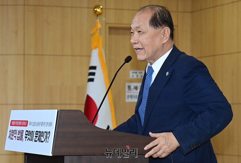 • 황우여 국민의힘 비상대책위원장이 4일 오후 국회 의원회관에서 열린 '처분적 법률, 무엇이 문제인가' 토론회에서 축사를 하고 있다.