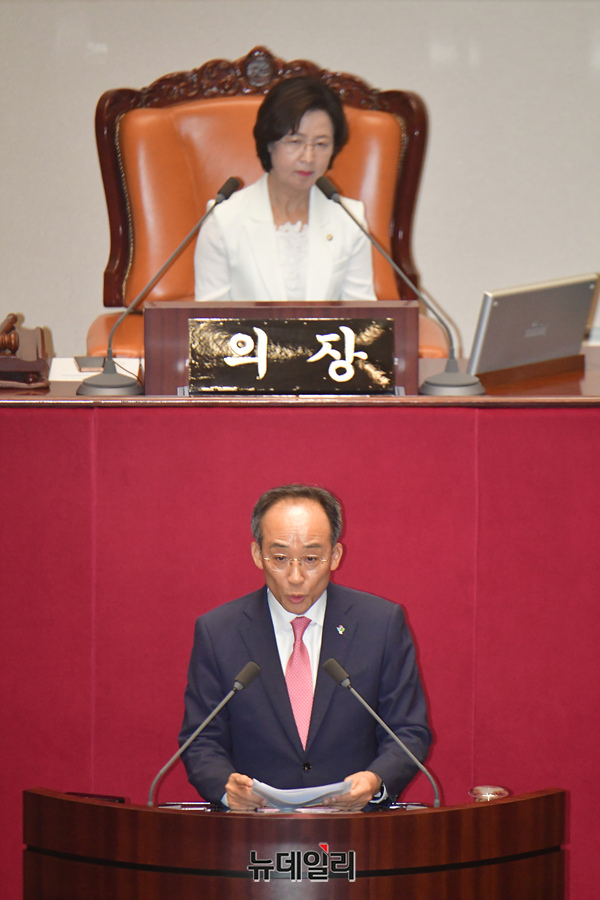 추경호 국민의힘 원내대표가 5일 오후 국회에서 열린 제22대 국회 첫 본회의에서 의사진행 발언을 하고 있다.