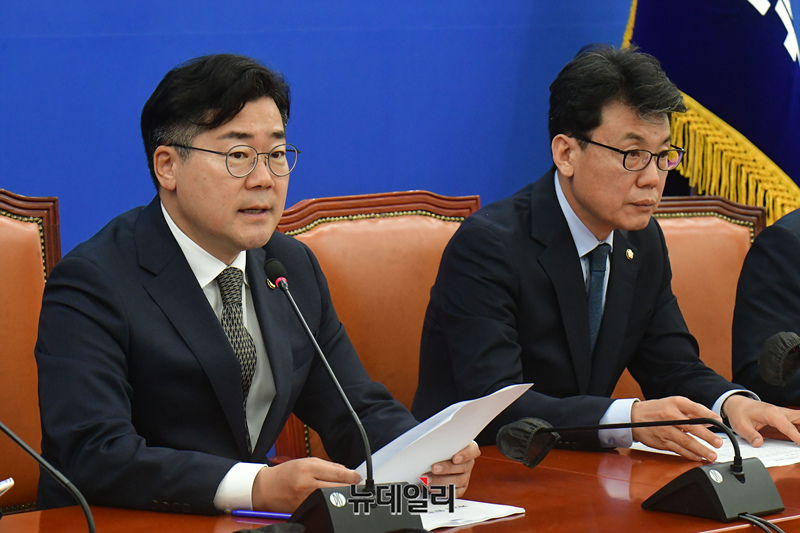 박찬대 더불어민주당 원내대표가 11일 오전 국회에서 열린 원내대책회의에서 모두발언을 하고 있다.