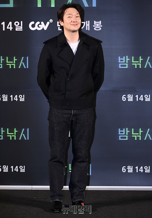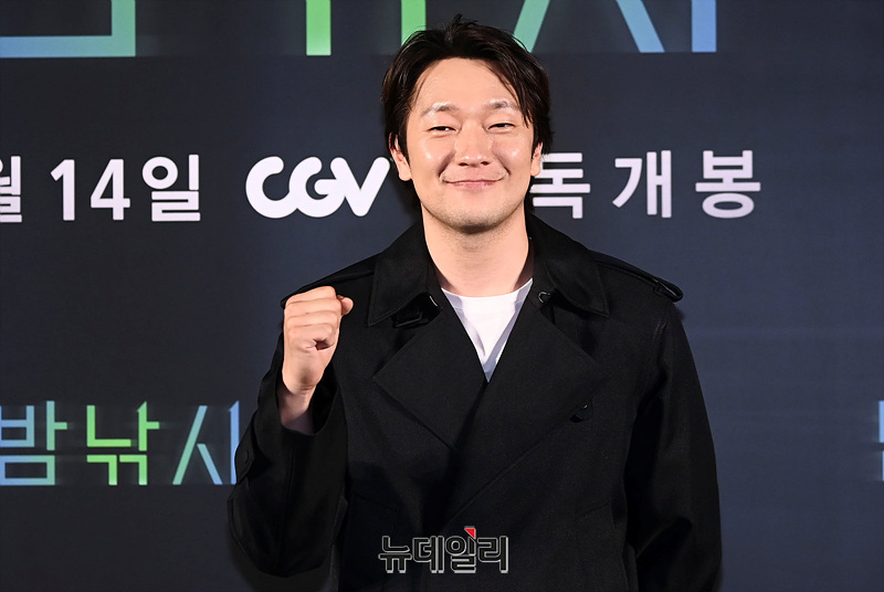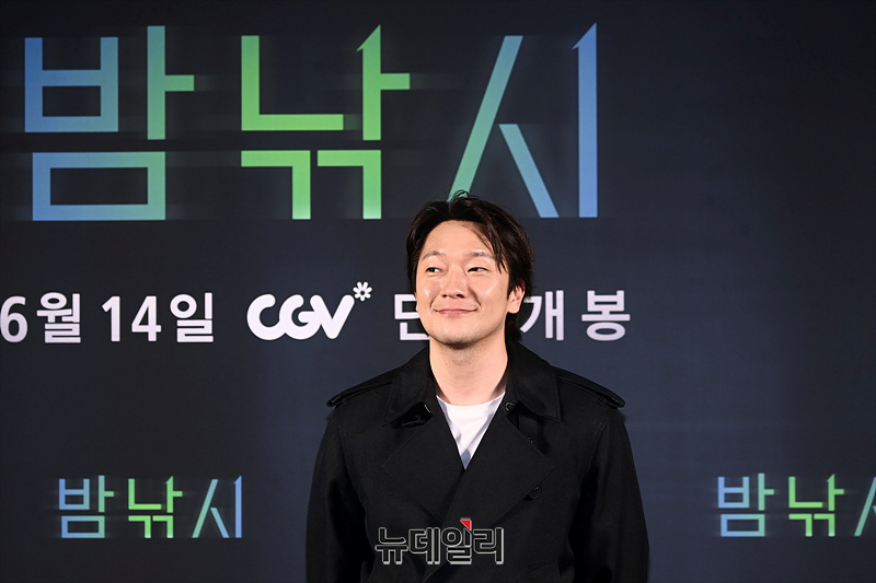 배우 손석구가 11일 오후 서울 CGV용산아이파크몰에서 열린 단편영화 '밤낚시(감독 문병곤)' 언론시사회에서 포즈를 취하고 있다.