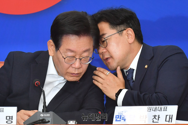 [포토] 대화 나누는 이재명 대표와 박찬대 원내대표
