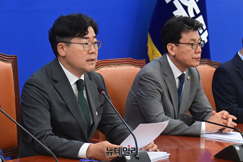 박찬대 더불어민주당 원내대표가 13일 오전 국회에서 열린 정책조정회의에서 발언하고 있다.