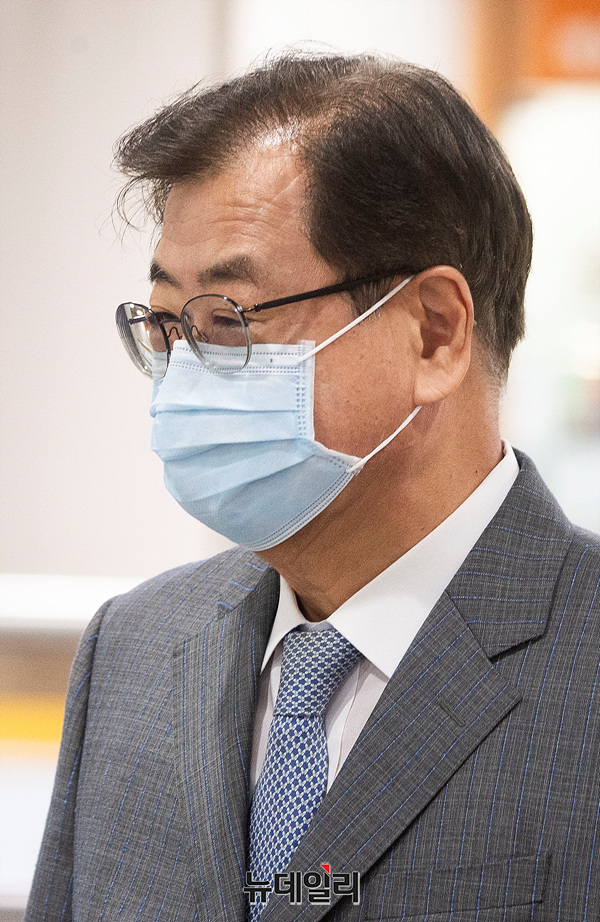 서훈 전 국가안보실장이 14일 오전 서울 서초구 중앙지법에서 열린 '서해 피격 은폐' 관련 공판에 출석하고 있다.