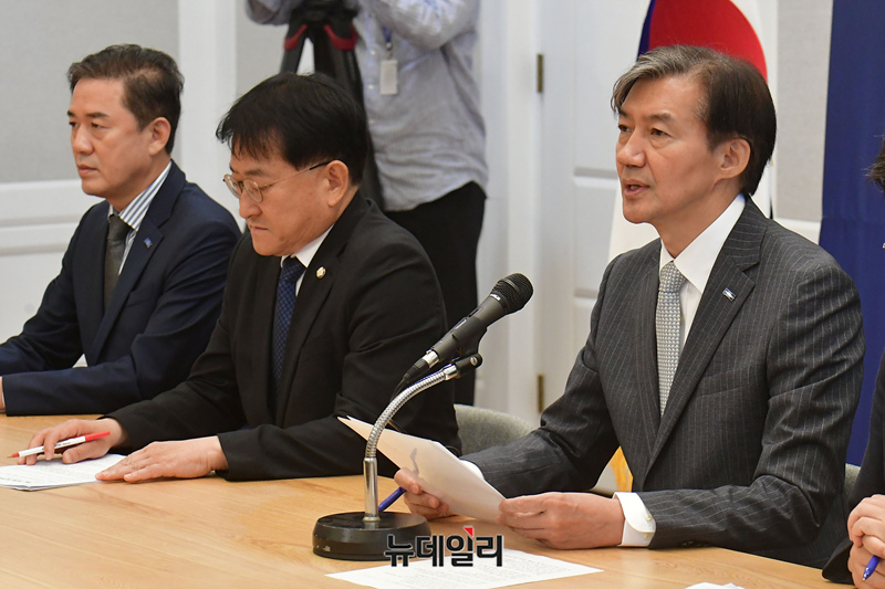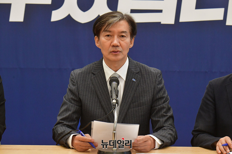 조국 조국혁신당 대표가 17일 오전 국회에서 열린 조국혁신당 최고위원회의에서 모두 발언을 하고 있다.