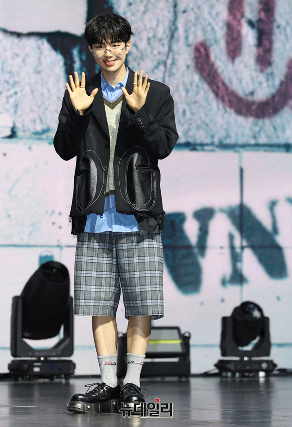 아이돌그룹 이븐(EVNNE) 박지후가 17일 오후 서울 광진구 예스24 라이브홀에서 열린 3번째 미니앨범 'RIDE or DIE(라이브 오브 다이)' 쇼케이스에서 포토타임을 갖고 있다.