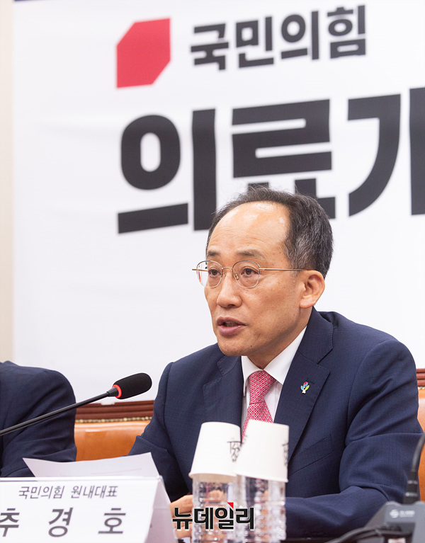 추경호 국민의힘 원내대표가 17일 오후 서울 여의도 국회에서 열린 '의료개혁특별위원회 당·정회의'에서 모두발언을 하고 있다.