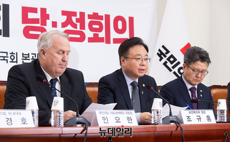 조규홍 보건복지부 장관이 17일 오후 서울 여의도 국회에서 열린 '의료개혁특별위원회 당·정회의'에서 모두발언을 하고 있다.