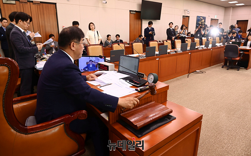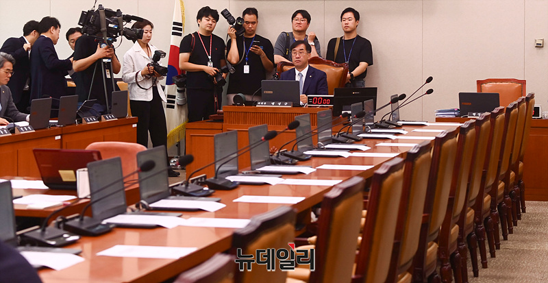 더불어민주당 소속 맹성규 국토교통위원회 위원장이 18일 오전 서울 여의도 국회에서 여당 소속 위원들이 불참한 가운데 전체회의를 주재하고 있다.