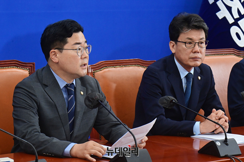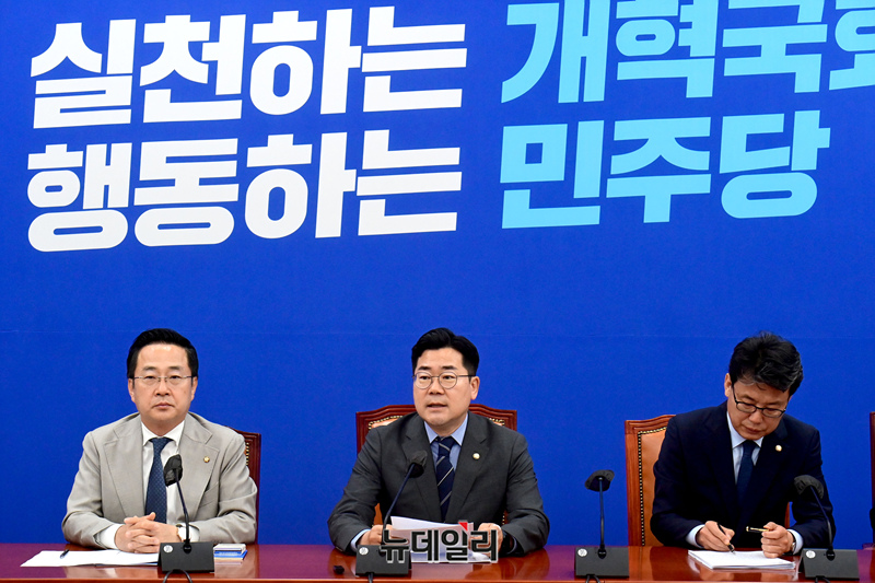 박찬대 더불어민주당 원내대표가 18일 오전 국회에서 열린 원내대책회의에 참석해 모두발언을 하고 있다.