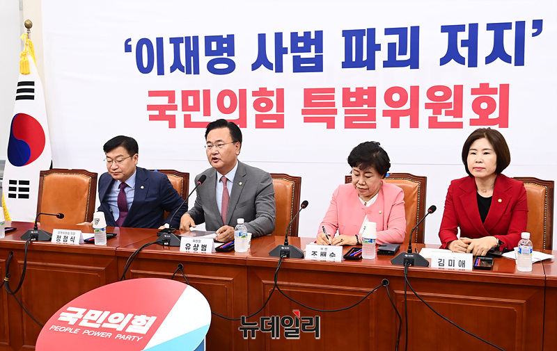 유상범 국민의힘 '이재명 사법 파괴 저지' 특별위원장이 18일 오전 서울 여의도 국회에서 열린 1차 특별위원회에서 모두발언을 하고 있다.