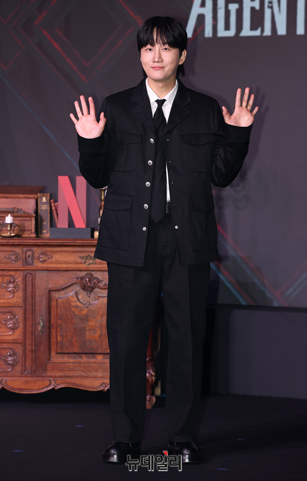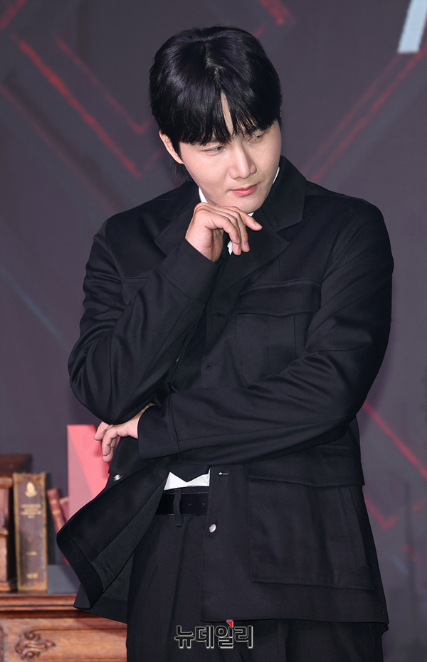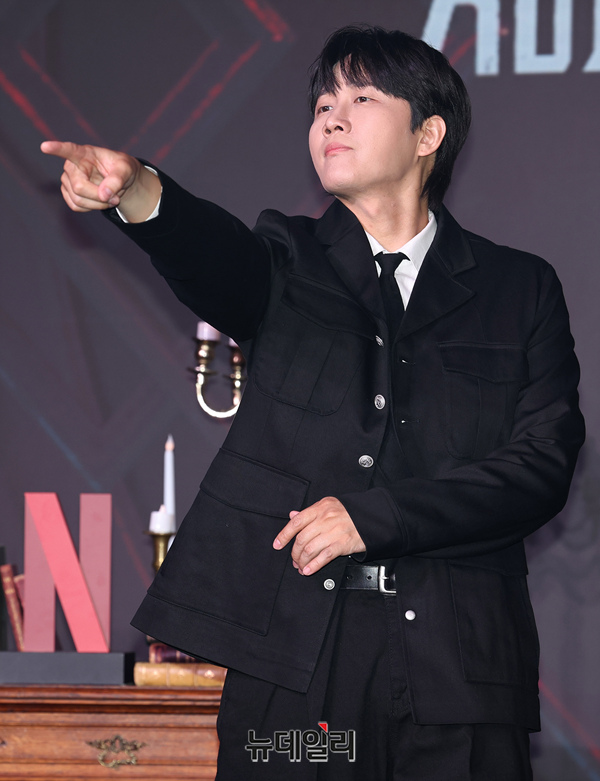 개그맨 이용진이 18일 오전 서울 마포구 호텔 나루에서 열린 넷플릭스 '미스터리 수사단' 제작보고회에서 포즈를 취하고 있다.