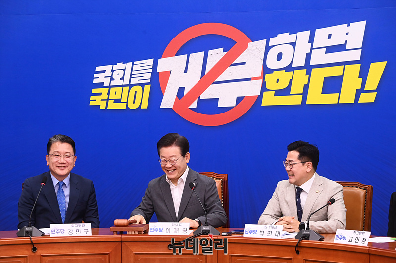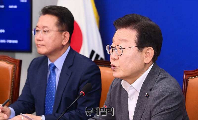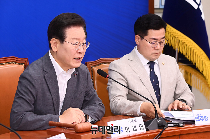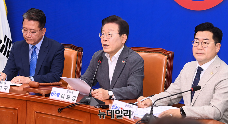 이재명 더불어민주당 대표가 19일 오전 서울 여의도 국회에서 열린 최고위원회의에서 모두발언을 하고 있다.