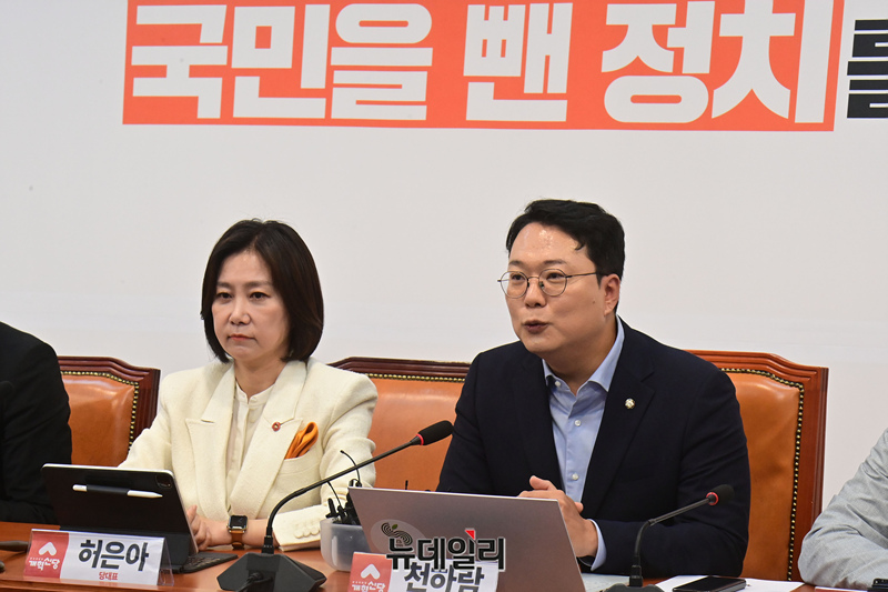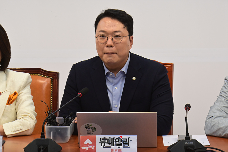천하람 개혁신당 원내대표가 지난 17일 오전 국회에서 열린 최고위원회의에서 모두발언을 하고 있다.