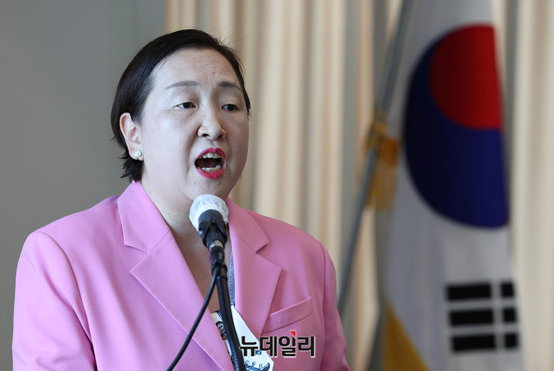 인지연 북한인권개선과자유통일을위한모임(NANK) 대표가 19일 오후 서울 중구 한국프레스센터에서 열린 북한인권 세미나에서 환영사를 하고 있다.이날 세미나는 NANK와 한반도청년미래포럼이 공동 주최로 '통일주역세대의 북한인권과 통일에 대한 현재 인식 및 향후 방안'을 주제로 진행됐다.세미나는 박준규 한반도청년미래포럼 창립자가 좌장을 맡아 최명섭 변호사, 김자훈 미국변호사, 김일혁 한반도청년미래포럼 북한인권 매니저, 오영택 NANK사업국장이 토론에 나섰다.