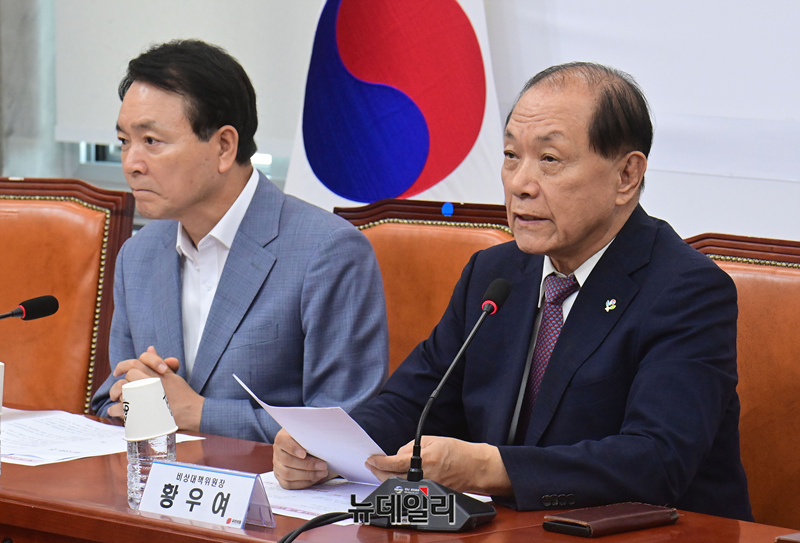 • 황우여 국민의힘 비상대책위원장이 19일 국회에서 열린 제13차 전국위원회에서 인사말을 하고 있다.