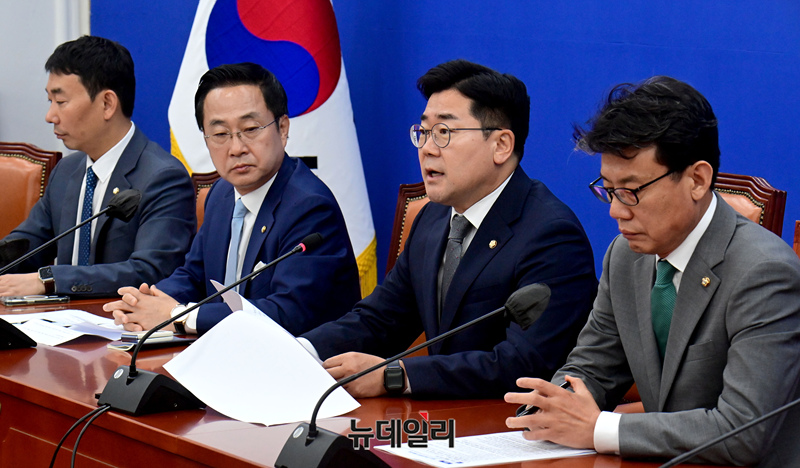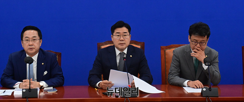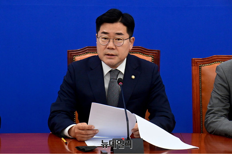 박찬대 더불어민주당 원내대표가 20일 오전 국회에서 열린 원내대책회의에 참석해 모두발언을 하고 있다.