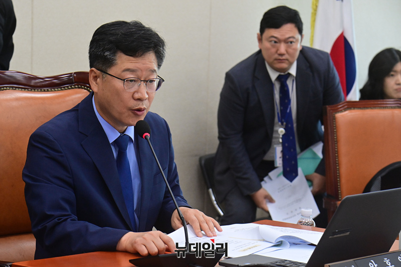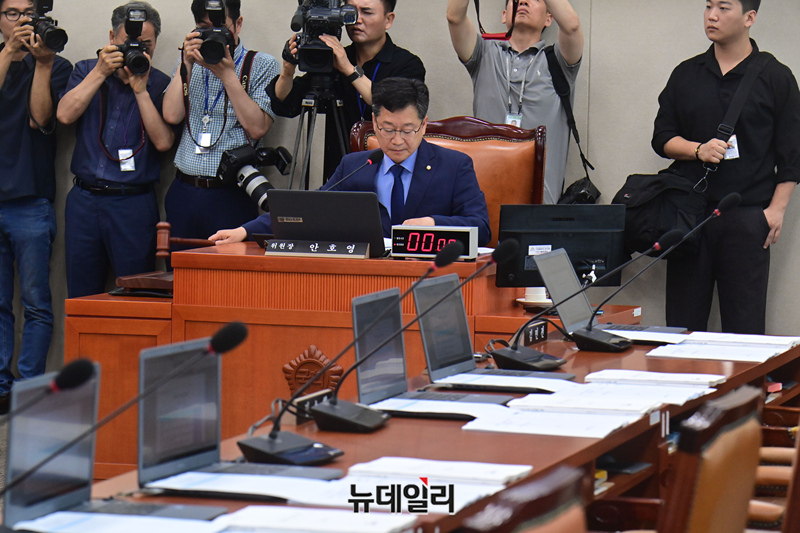 [포토] 여당·국무위원 없는 회의 주재하는 안호영 환노위원장