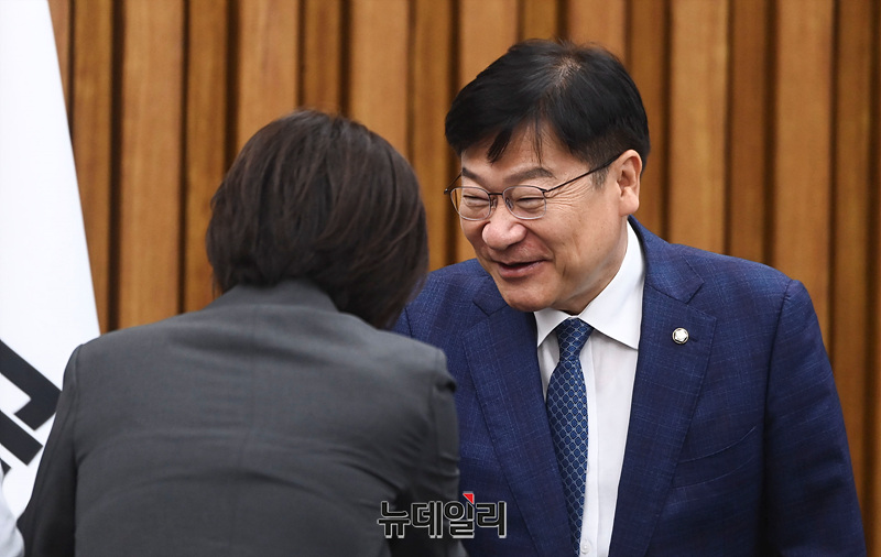 [포토] 민당정 협의회 참석하는 정점식 정책위의장