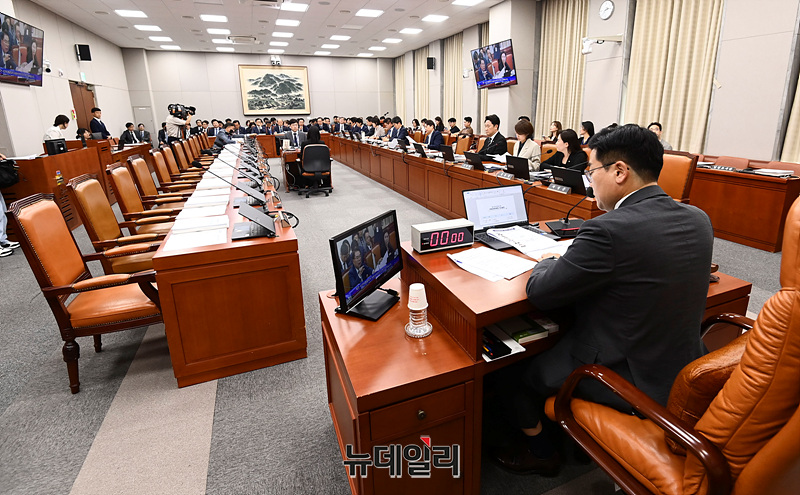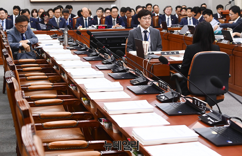 박찬대 국회 운영위원장이 21일 오전 서울 여의도 국회에서 여당 소속 위원들이 불참한 가운데 전체회의를 주재하고 있다.