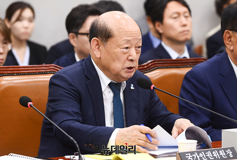 송두환 국가인권위원장이 21일 오전 서울 여의도 국회에서 열린 국회운영위원회 전체회의에서 의원들의 질의에 답하고 있다.