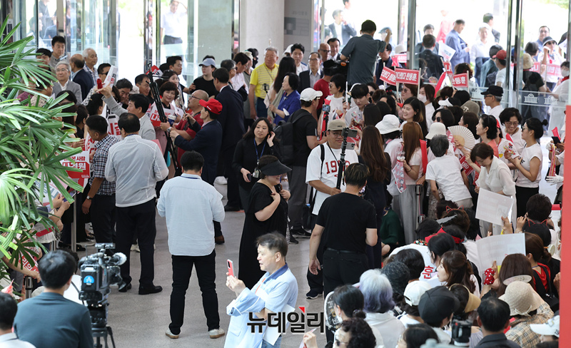 [포토] 당대표 출마 앞두고 국회 모인 한동훈 지지자들