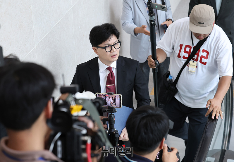 [포토] 지지자 환호 받으며 기자회견장 이동하는 한동훈