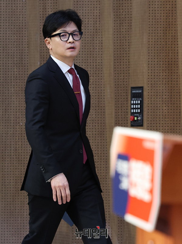 한동훈 전 국민의힘 비상대책위원장이 23일 오후 국회 소통관에서 7월 개최되는 전당대회에서 선출할 당대표에 출마 선언을 하기위해 기자회견장으로 이동하고 있다.