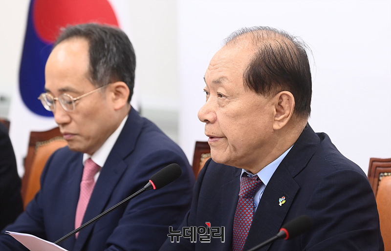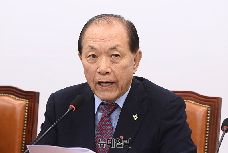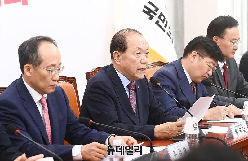 황우여 국민의힘 비상대책위원장이 24일 오전 서울 여의도 국회에서 열린 비상대책위원회의에서 모두발언을 하고 있다.