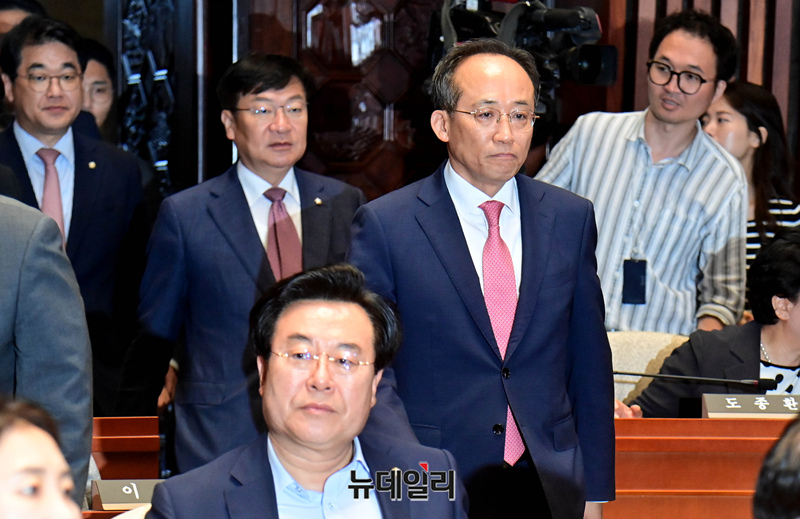 [포토] 상임위 수용 놓고 열린 의총 참석하는 추경호 원내대표