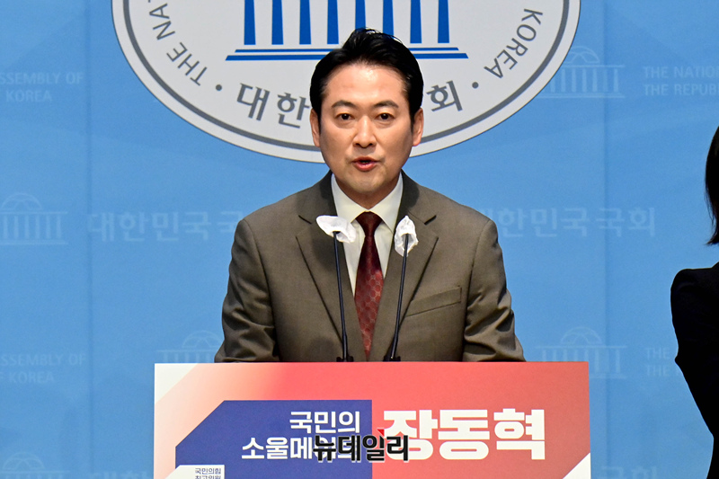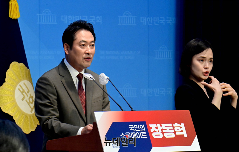 장동혁 국민의힘 의원이 24일 국회 소통관에서 기자회견을 갖고 최고위원 출마를 선언하고 있다.