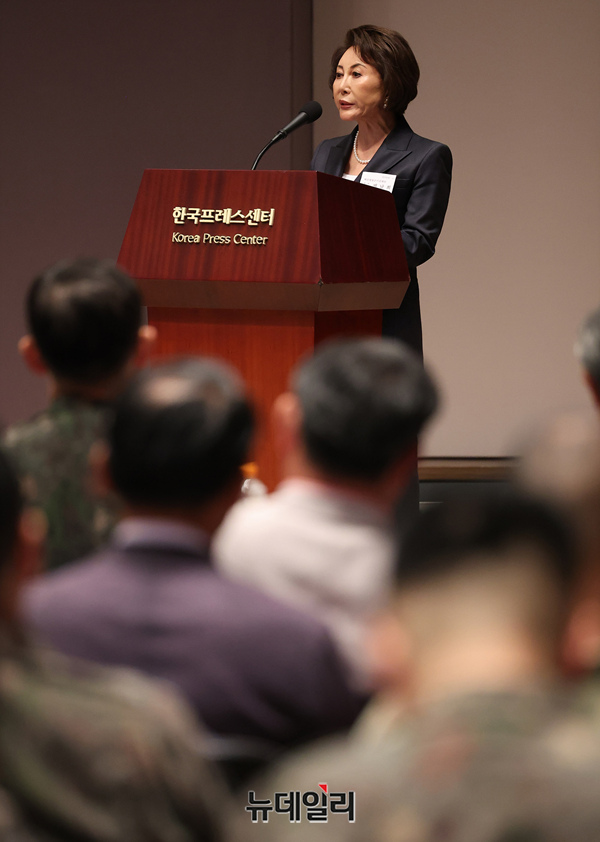 백선엽 장군의 장녀 백남희 재단 명예이사장이 24일 오후 서울 중구 한국프레스센터에서 '백선엽 장군의 전쟁철학과 한미동맹'을 주제로 열린 제1회 백선엽장군기념재단 국제학술회의에서 축사를 하고 있다.이날 학술회의는 '6.25전쟁 중의 백선엽 장군과 미군' '백선엽 장군의 전장리더십과 한미동맹' '한미동맹은 강해지고 있는가?'를 주제로 진행됐다.발표는 유광종 종로문화재단 대표, 장삼열 한미안보연구회 사무총장, 유욱상 예비역 준장이 각각 맡았다.토론에는 이영종 한국국가전략연구원 북한연구센터장, 문관현 연합뉴스 국제부장, 김명섭 연세대 교수, 허남성 명예교수, 김정혁 한미연합사단 부단장, 선종률 월간군사저널 회장 등이 맡았다.