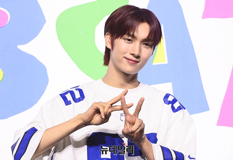 그룹 '투어스(TWS)' 영재가 24일 오후 서울 용산구 블루스퀘어에서 열린 미니 2집 '서머 비트!(SUMMER BEAT!)' 발매 기념 쇼케이스에서 포즈를 취하고 있다.