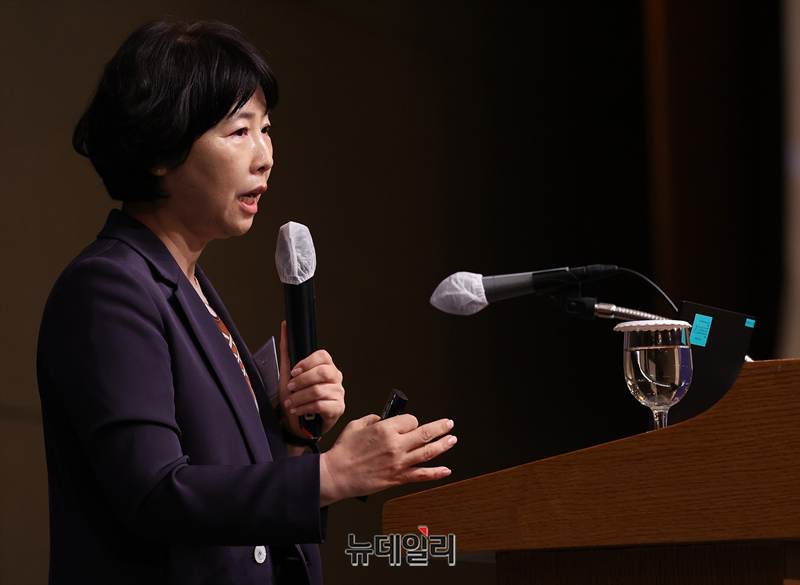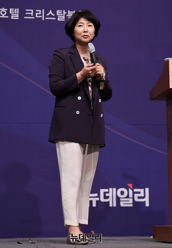 김연희 BCG코리아 대표 파트너가 25일 오전 서울 중구 롯데호텔에서 열린 '제1회 뉴데일리 퓨처코리아 포럼'에서 기조강연을 하고 있다.