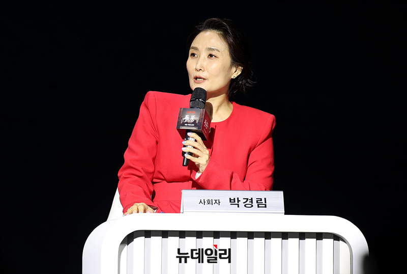 방송인 박경림이 25일 오전 서울 종로구 JW 메리어트 동대문 스퀘어에서 열린 넷플릭스 시리즈 '돌풍(연출 김용완, 극본 박경수)' 제작보고회에서 작품소개를 하고 있다.