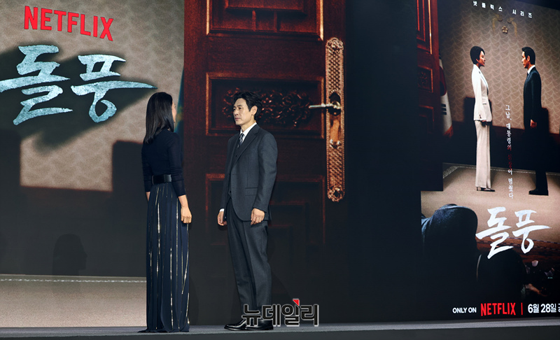 '돌풍'은 세상을 뒤엎기 위해 대통령 시해를 결심한 국무총리와 그를 막아 권력을 손에 쥐려는 경제부총리 사이의 대결을 그린 시리즈다. 28일 넷플릭스 공개.