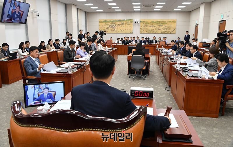 김영호 교육위원회 위원장이 25일 오전 국회에서 열린 교육위원회 전체회의에서 의사진행을 하고 있다.