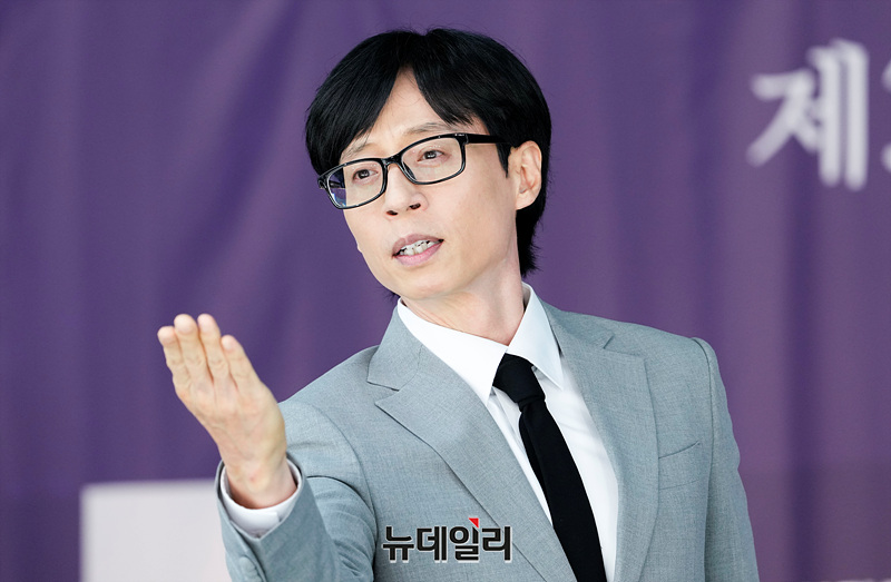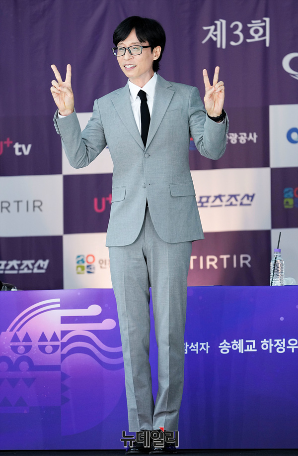 방송인 유재석이 25일 오후 인천 중구 상상플랫폼에서 열린 제3회 청룡시리즈어워즈 핸드프린팅 행사에서 포즈를 취하고 있다. (인천=서성진 기자)