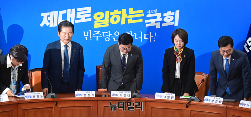 [포토] 이재명 없는 최고위 참석하는 박찬대